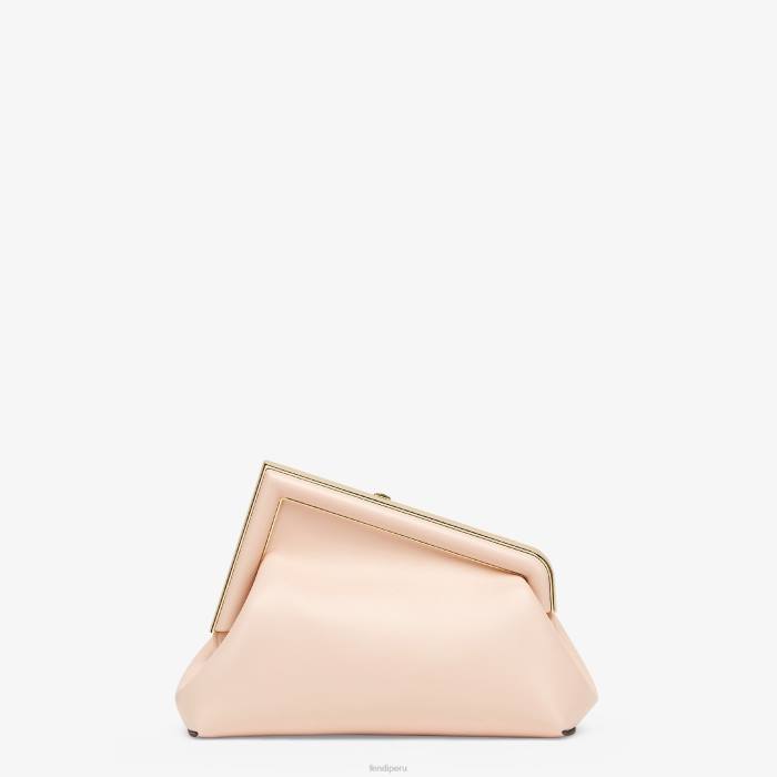 Primer bolso Fendi pequeño confeccionado en napa suave de color rosa pálido con cierre en forma de F de metal extragrande ribeteado en piel de napa tono sobre tono.