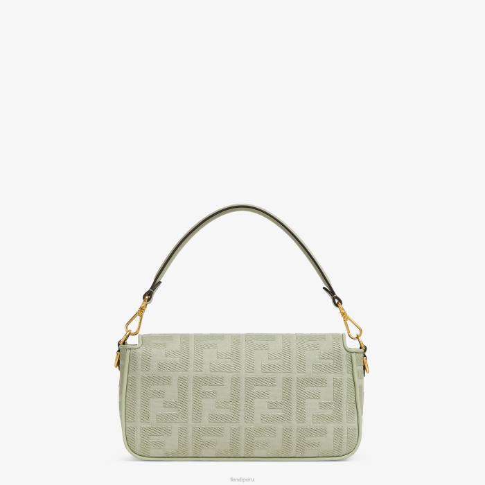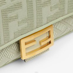 Icónico bolso baguette mediano confeccionado en lona verde claro con motivo ff en relieve creado con bordado tono sobre tono, ribeteado en piel y adornado con un cierre ff.