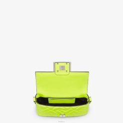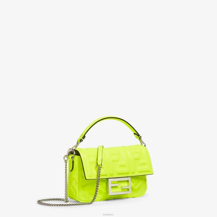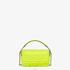 icónico bolso mini baguette confeccionado en suave napa de color amarillo neón con un motivo ff en relieve con textura tridimensional. decorado con cierre ff.