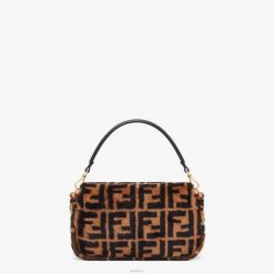 icónico bolso baguette mediano confeccionado en suave piel de oveja con estampado del motivo ff en marrón y negro. decorado con un cierre ff.