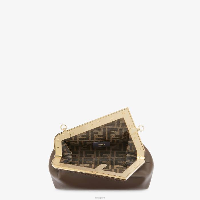 Primer bolso pequeño de Fendi confeccionado en suave napa marrón oscuro con cierre en forma de F de metal extragrande encuadernado en exquisita piel de pitón tono sobre tono.
