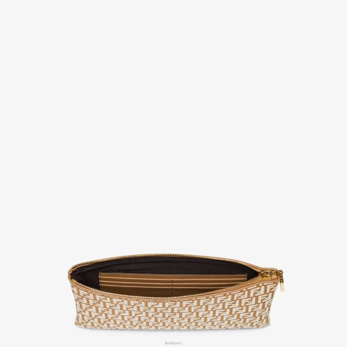 bolsa con cierre de cremallera. Confección en rafia natural con motivo mini ff de chenilla blanca. acabado con tirador de cremallera baguette ff. artículos de metal con acabado dorado.