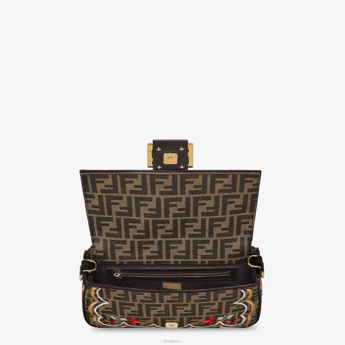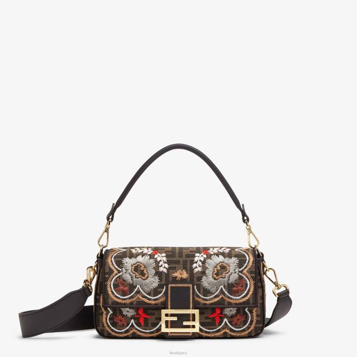 icónico bolso baguette mediano confeccionado en tejido jacquard con motivo ff delicadamente bordado con un motivo floral en hilo multicolor. decorado con un cierre ff.