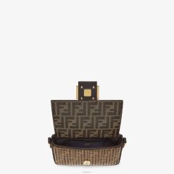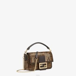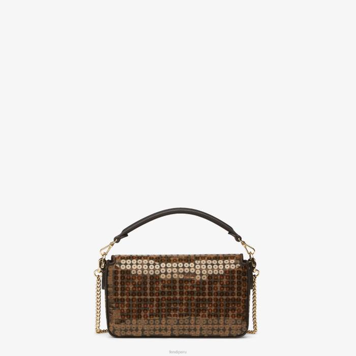 icónico bolso mini baguette confeccionado en tejido con motivo ff en jacquard bordado integralmente con lentejuelas transparentes brillantes. decorado con un cierre ff.