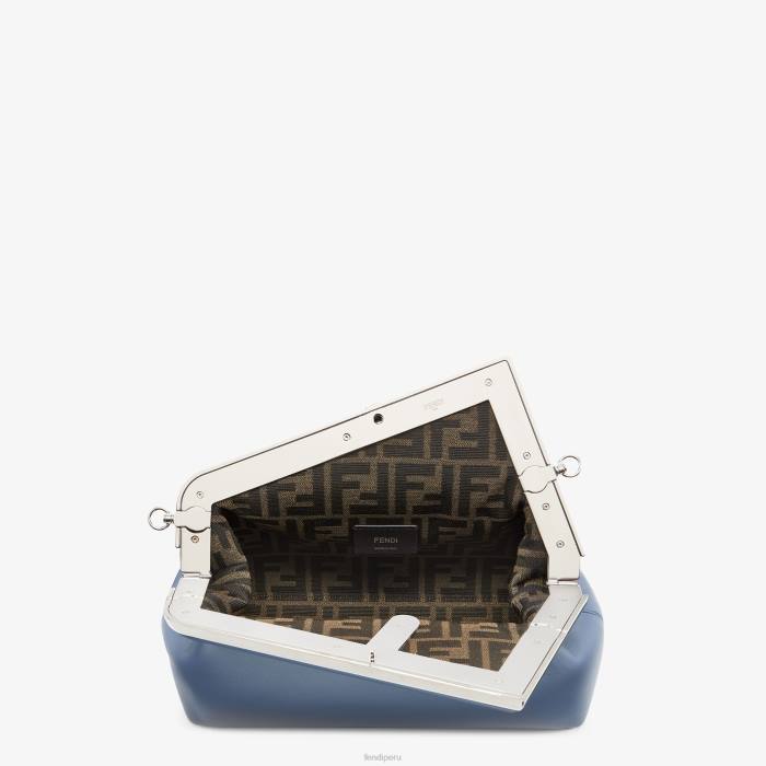 Primer bolso Fendi del tamaño perfecto para el día, confeccionado en suave napa azul, con cierre oversize de metal en forma de F ribeteado en napa tono sobre tono.
