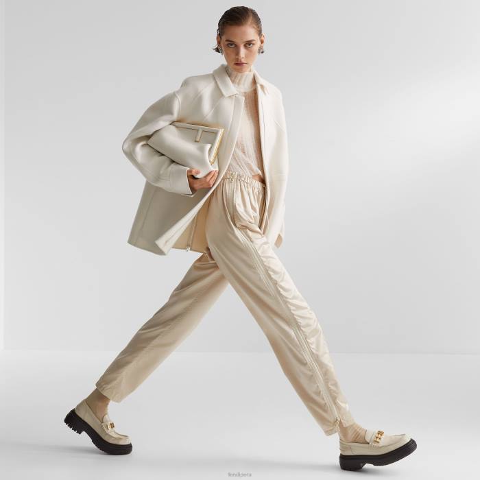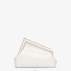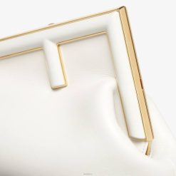 Primer bolso Fendi del tamaño perfecto para el día, confeccionado en suave napa blanca, con cierre en forma de F de metal de gran tamaño ribeteado en napa tono sobre tono.