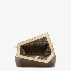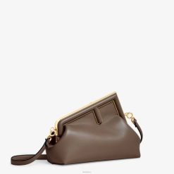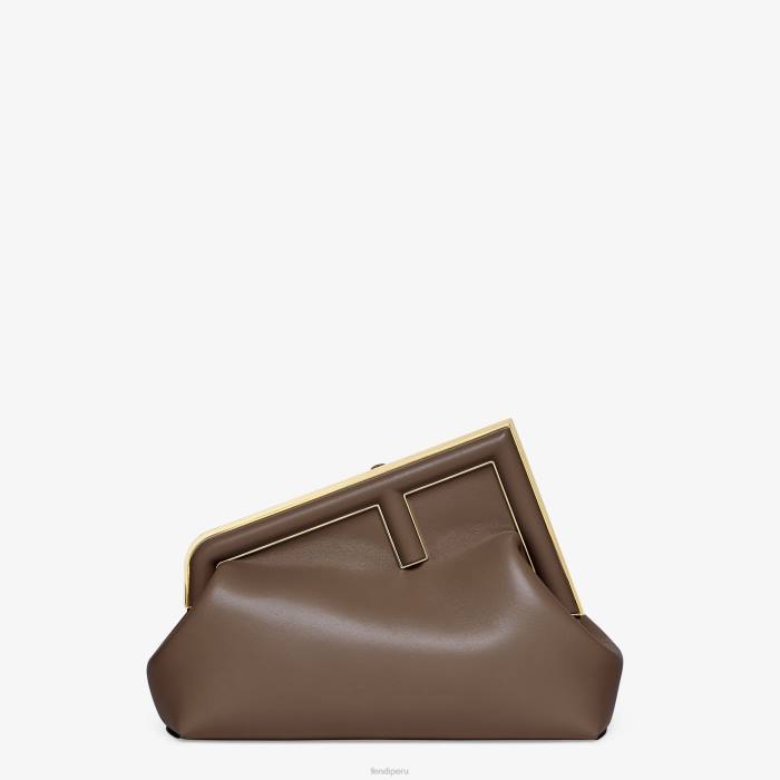 Primer bolso Fendi del tamaño perfecto para el día, confeccionado en suave napa marrón oscuro con cierre en forma de F de metal de gran tamaño forrado en piel de napa tono sobre tono.