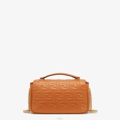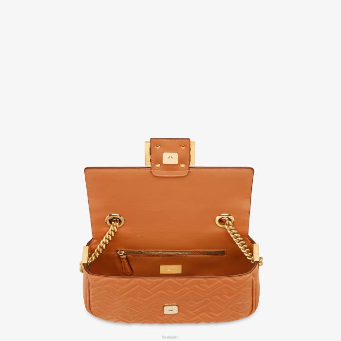 icónico bolso baguette mediano con cadena, confeccionado en suave napa marrón con motivo ff de textura tridimensional. decorado con un cierre ff.