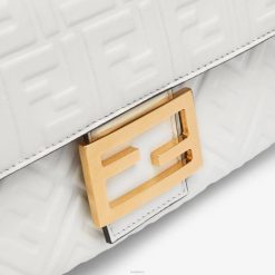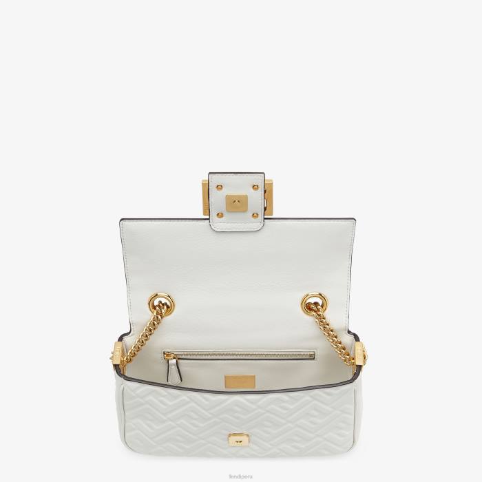 icónico bolso baguette mediano con cadena, confeccionado en suave napa blanca con motivo ff de textura 3d. decorado con un cierre ff.