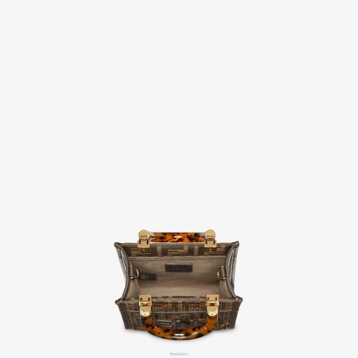 Fendi mujer Bolso mini ff de tejido jacquard con lentejuelas 2LH8E584 accesorios marrón