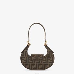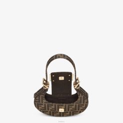 Bolso hobo mini cookie confeccionado en tejido jacquard con el icónico motivo ff en color marrón, decorado con cierre ff.