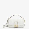 icónico bolso peekaboo pequeño confeccionado en piel blanca y adornado con el clásico cierre de giro en ambos lados.