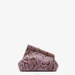 Primer bolso Fendi pequeño confeccionado en exquisita piel de pitón lila brillante con cierre de metal de gran tamaño en forma de F encuadernado en piel de pitón tono sobre tono.