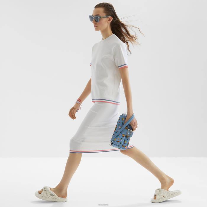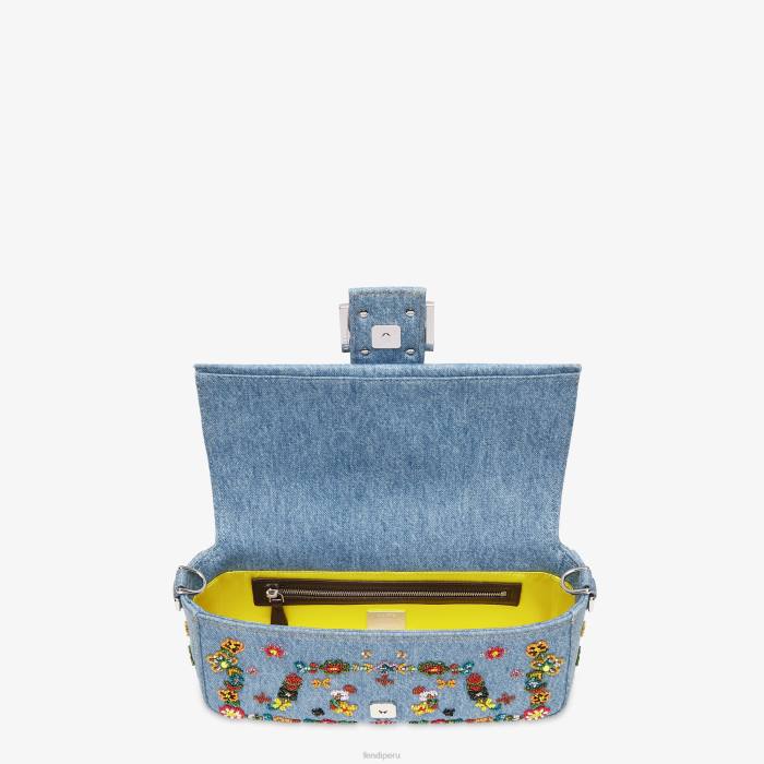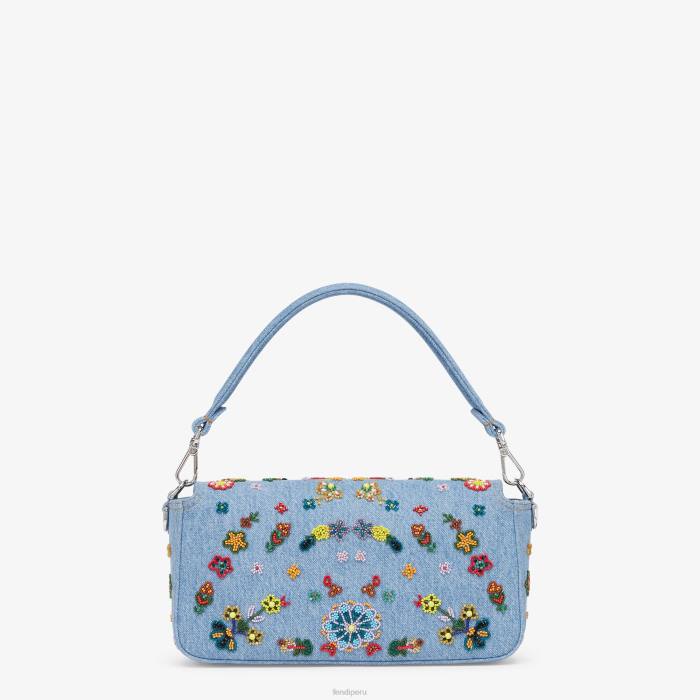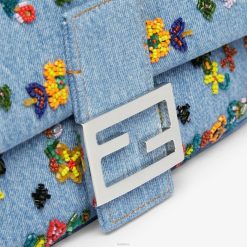 Fendi mujer bolso reedición denim con bordado de flores 2LH8E635 accesorios azul claro