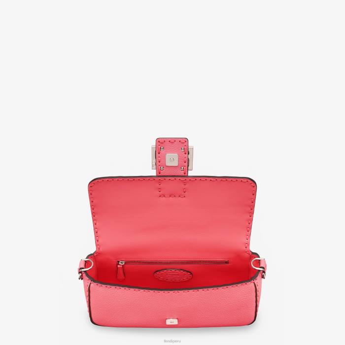 Icónico bolso baguette mediano, confeccionado en piel cuoio romano rosa adornado a mano con costuras a juego. decorado con un cierre ff.