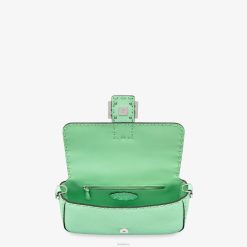 Icónico bolso baguette mediano, confeccionado en piel cuoio romano verde adornado a mano con costuras a juego. decorado con un cierre ff.