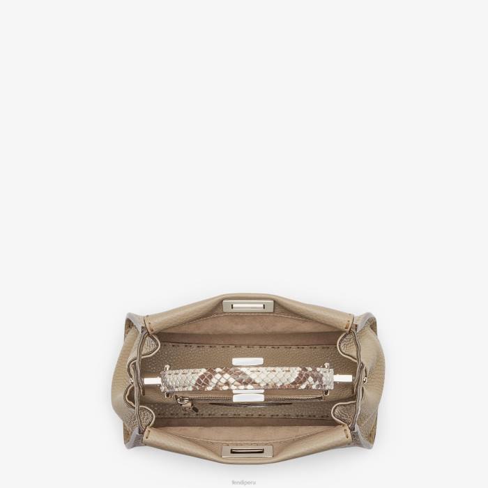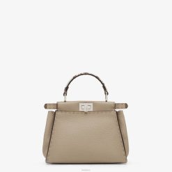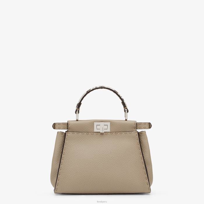 icónico bolso peekaboo pequeño confeccionado en piel cuoio romano gris tórtola, rematado con costuras a mano y adornado con el clásico cierre de giro en ambos lados.