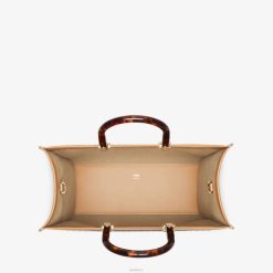 Bolso shopper mediano Sunshine confeccionado en piel color miel, con aplicación de letras fendi roma en elaphe estampado efecto pitón y asas rígidas de plexiglás efecto carey.