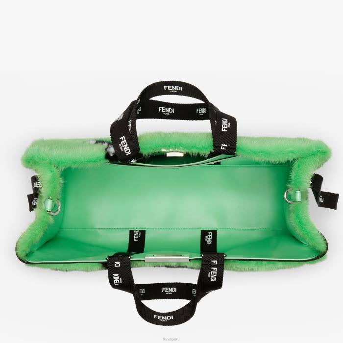 Fendi mujer bolso shopper de visón con incrustación de cinta 2LH8E760 accesorios verde