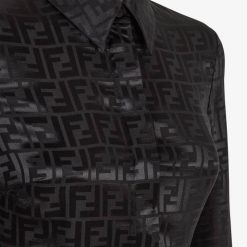 camisa corta de manga larga. Cierre con botones ocultos. Confección en crepé de seda con motivo ff de jacquard en color negro.