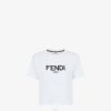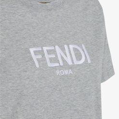 Camiseta regular fit con cuello redondo y manga corta. Confeccionado en jersey de algodón gris melange. Marca con letras Fendi Roma bordadas en blanco en la parte delantera.