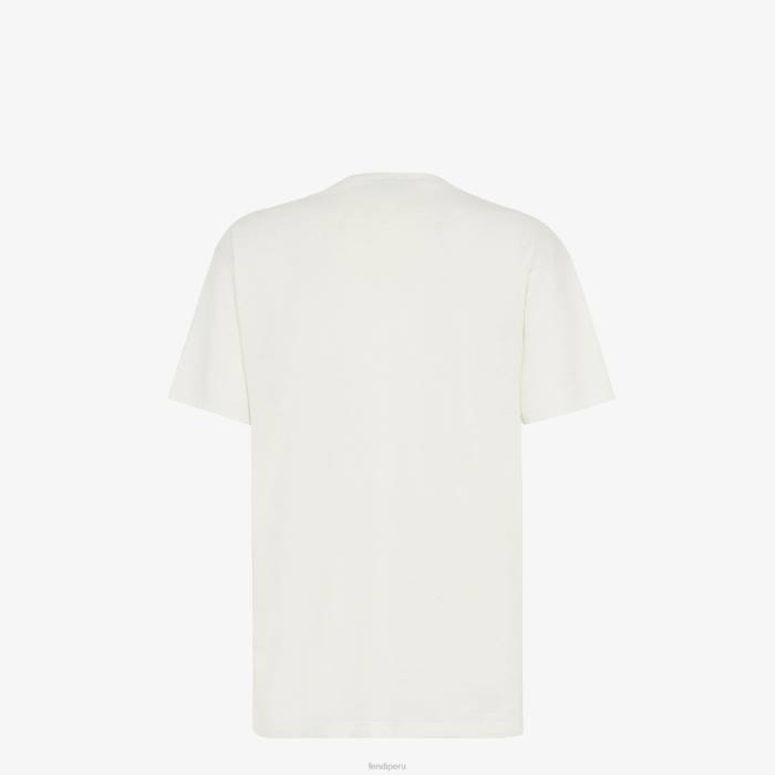 Camiseta regular fit de manga corta y cuello redondo. confeccionado en ligero jersey de algodón blanco crema. personalizado en la parte delantera con el texto fendi estampado con efecto desgastado en contraste.
