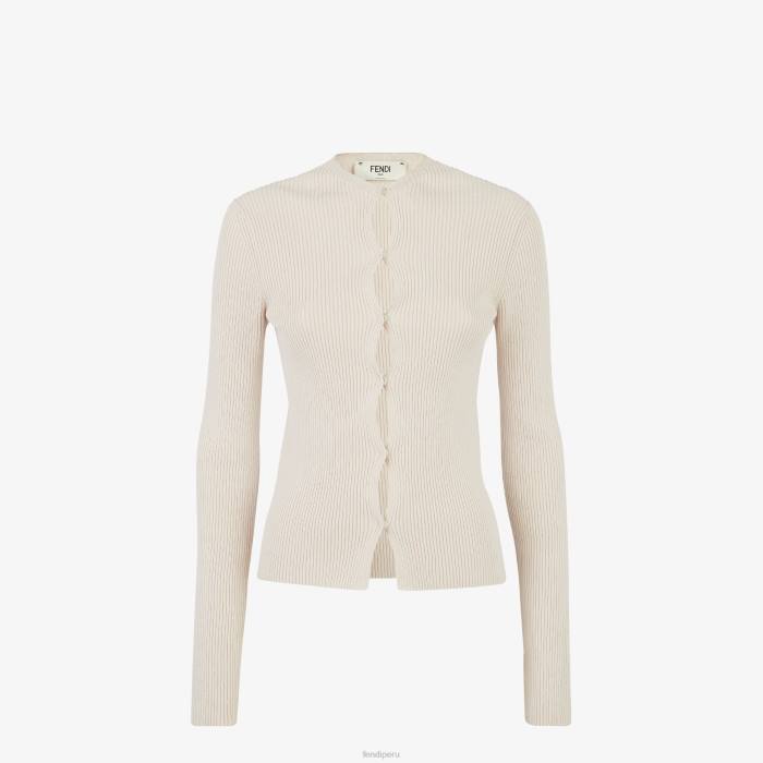 Fendi mujer cárdigan de algodón 2LH8E1064 vestir beige
