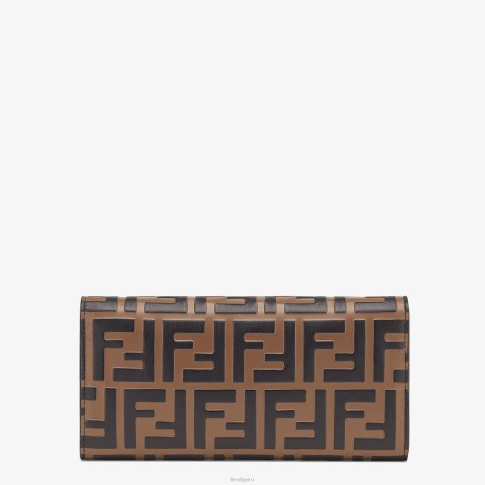 Cartera fendi continental f is con correa de hombro de cadena fina desmontable. el interior tiene una disposición similar a una cartera con dos compartimentos reforzados, un bolsillo con cremallera, bolsillos planos y seis ranuras para tarjetas. fabricado en cuero marrón. rematado con motivo ff grabado y pintado a mano. artículos de metal con acabado dorado.