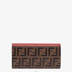 Cartera fendi continental f is con correa de hombro de cadena fina desmontable. el interior tiene una disposición similar a una cartera con dos compartimentos reforzados, un bolsillo con cremallera, bolsillos planos y seis ranuras para tarjetas. Confección en piel crucero abatanada de color rojo. rematado con motivo ff grabado y pintado a mano. artículos de metal con acabado dorado.