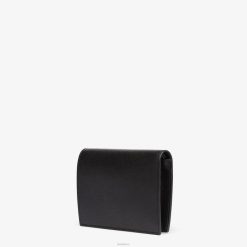 Cartera plegable compacta F is Fendi. Interior decorado con bolsillo plano, monedero con botón automático y cuatro ranuras para tarjetas. Confeccionado en piel de becerro negra. artículos de metal con acabado dorado.