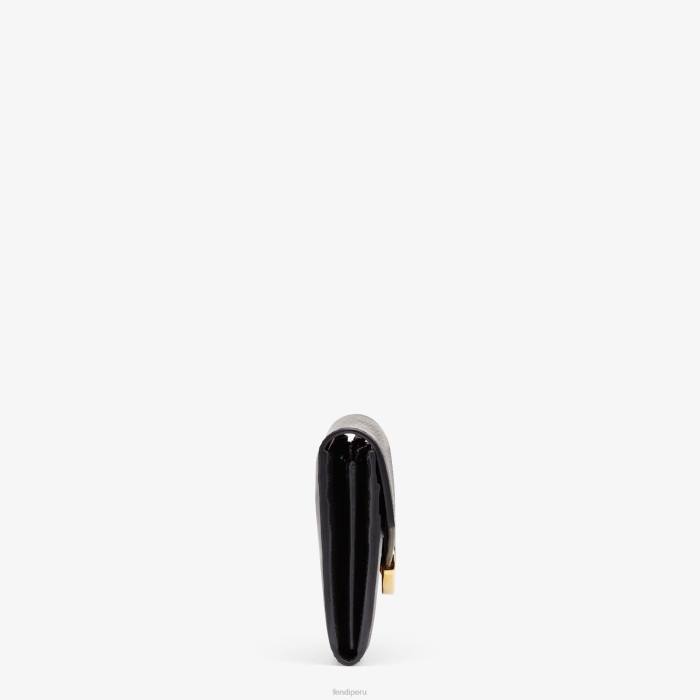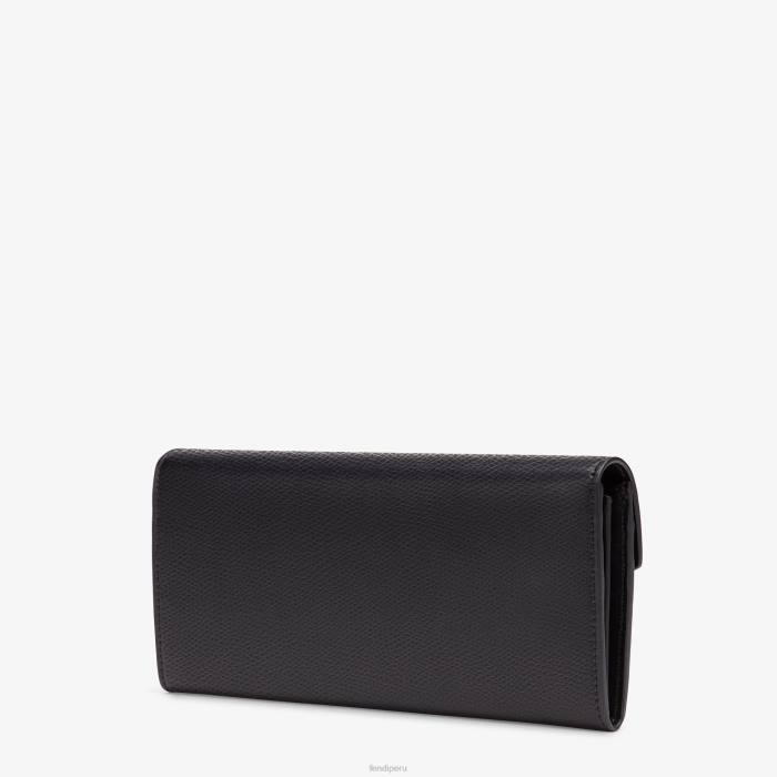 Cartera f es fendi continental con cierre de botón de presión. espacioso y bien organizado, con dos bolsillos con fuelle, un bolsillo con cremallera, diez ranuras para tarjetas y bolsillos laterales planos. Confeccionado en piel de becerro negra. la solapa está decorada con el nuevo logotipo de Fendi. artículos de metal con acabado dorado.