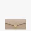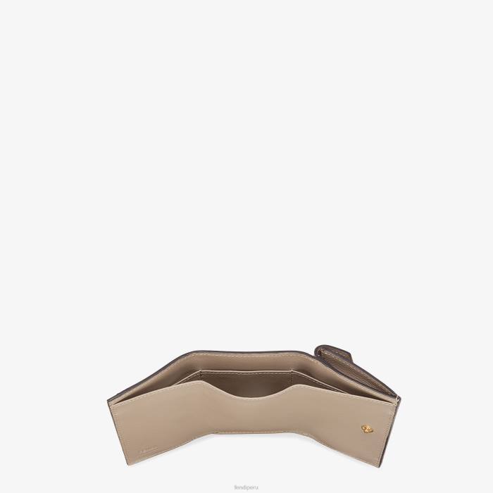 Cartera compacta f is fendi de tres pliegues, con gran compartimento interno para dinero en efectivo, 3 bolsillos para tarjetas ocultos y un monedero externo con cierre de botón de presión. Confección en piel crucero beige. decorado con el nuevo logotipo de Fendi. orfebrería dorada.