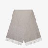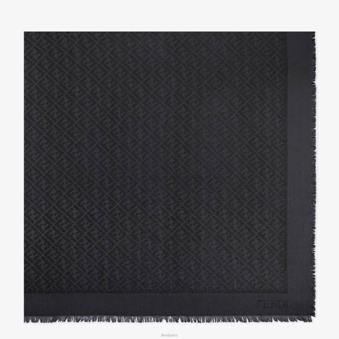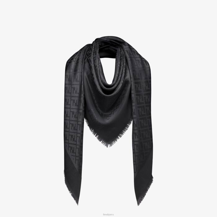 Mantón grande confeccionado en suave mezcla de lana y seda, adornado con hilo de lúrex negro con el icónico motivo ff en tono a juego. acabado con dobladillos deshilachados a mano.