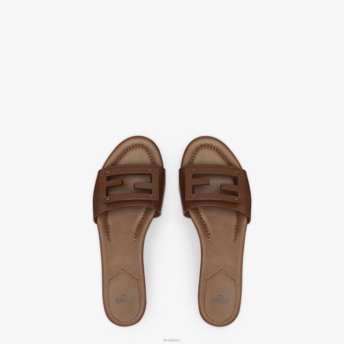 diapositivas de banda ancha. fabricado en cuero marrón. adornado con motivo baguette ff en piel tono sobre tono.
