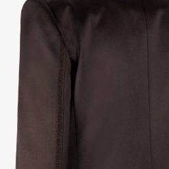 Chaqueta corta de botonadura simple con cuello de solapa pequeña, manga sisa y abertura central en la espalda. Bolsillo en el pecho y bolsillos con solapa en la parte delantera. cerrado con tres botones forrados. Confeccionado en raso duquesa de seda y algodón marrón con textura lavada. acabado con microinscripción “fendi roma made in italy” bordada en tono a juego en la parte posterior de la manga izquierda.