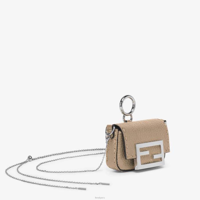 Fendi mujer charm nano baguette de cuero 2LH8E52 accesorios beige