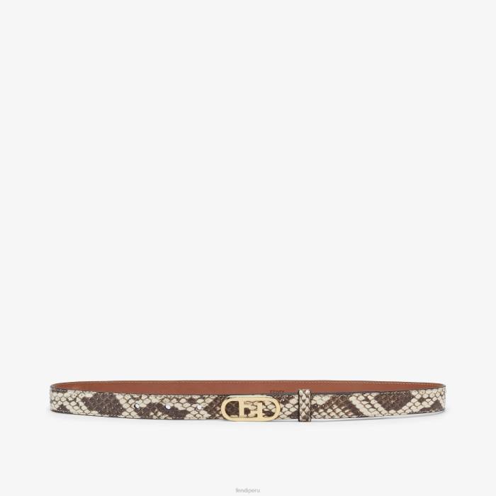 Cinturón estrecho con presilla y hebilla Fendi O’lock. Confección en piel elaphe con estampado de pitón marrón. artículos de metal con acabado dorado.