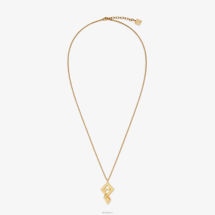 collar de cadena fina con colgantes ff entrelazados. fabricado en metal con acabado dorado.
