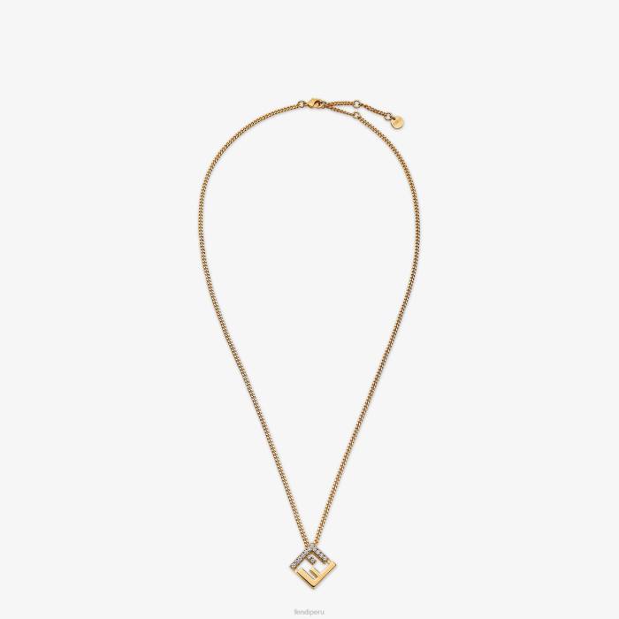 collar de cadena fina con colgante ff. cierre de clip. fabricado en metal con acabado dorado. adornado con cristales blancos.