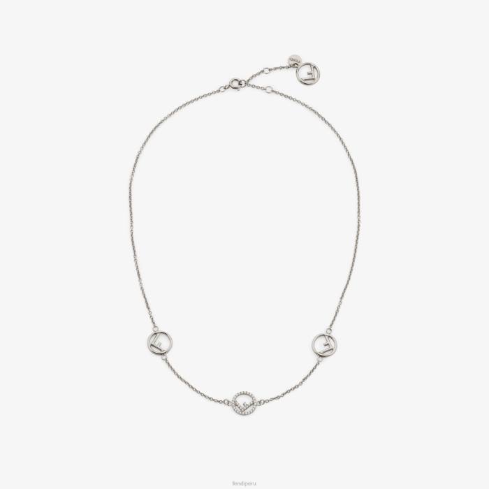 collar de cadena con adornos en forma del logo f is fendi. Cierre de clip pequeño y placa con logo. de metal con acabado paladio y decorado con circonitas blancas.