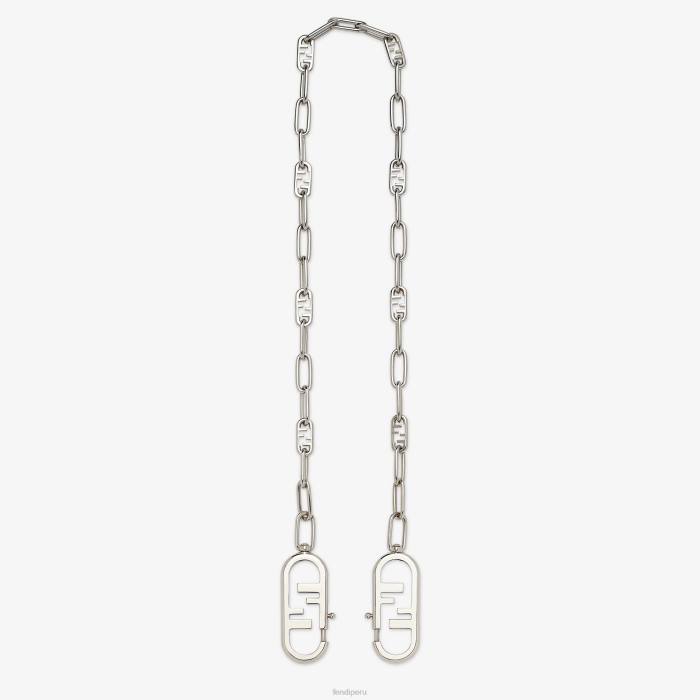 Correa de hombro de malla de cadena con doble clip Fendi O’lock, para usar en combinación con cualquier bolso con puntos de fijación. fabricado en metal con acabado paladio.