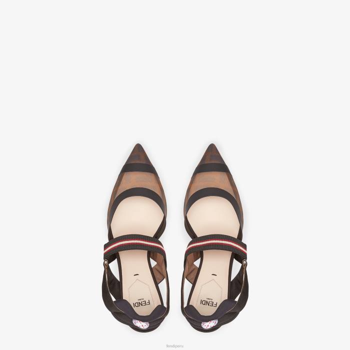 Fendi mujer destalonado de tacón medio de malla multitech 2LH8E1394 zapatos marrón
