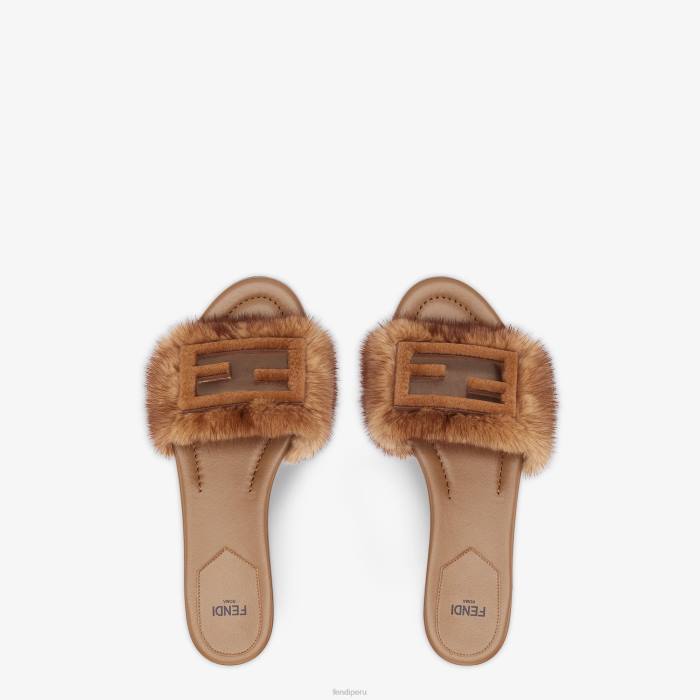diapositivas de banda ancha. confeccionado en visón marrón. adornado con motivo baguette ff en piel tono sobre tono.