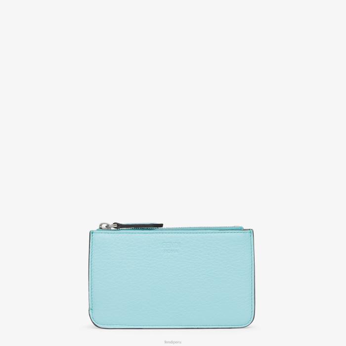 Fendi mujer estuche para llaves peekaboo bolsa de cuero 2LH8E1530 accesorios azul claro