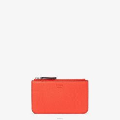 Estuche para llaves Fendi Roma con fuelle en los laterales. la parte trasera cuenta con cuatro ranuras para tarjetas. En el interior hay una correa extraíble con clip. cierre de cremallera. Confección en piel cuoio romano roja. Artículos metálicos con acabado en paladio.