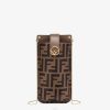 F es un llavero fendi con laterales reforzados. el reverso tiene cuatro ranuras para tarjetas. En el interior hay una correa extraíble con clip. cierre de cremallera. Confección en piel cuoio romano azul claro. Artículos metálicos con acabado en paladio.