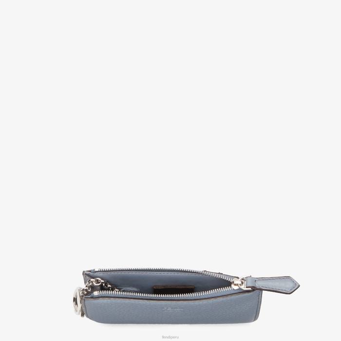 Fendi mujer estuche para llaves peekaboo bolsa de cuero 2LH8E1572 accesorios azul claro