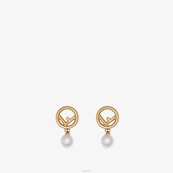 Pendientes de aro con motivo f is fendi. fabricado en metal con acabado dorado. adornado con un colgante de perla blanca.