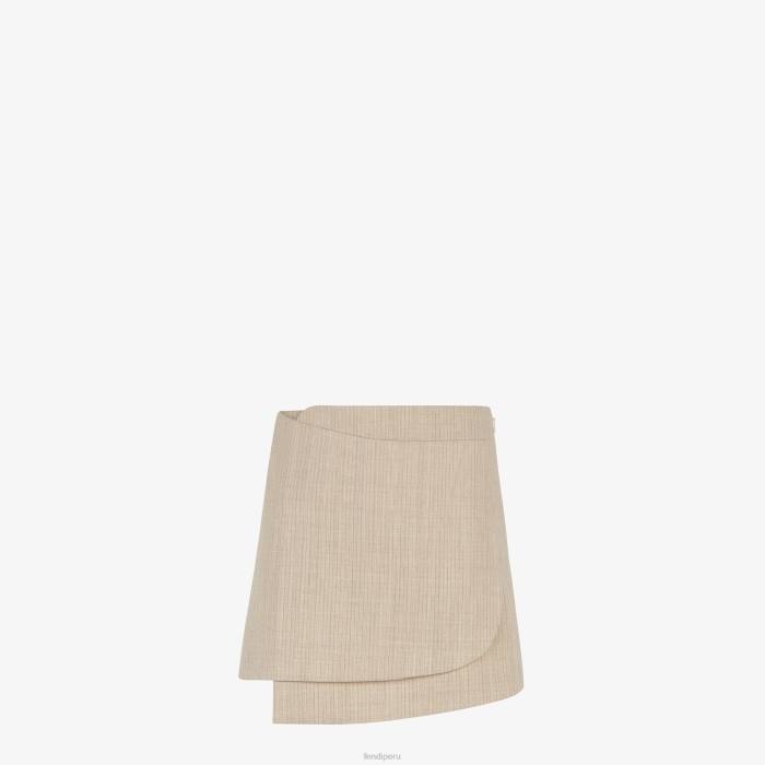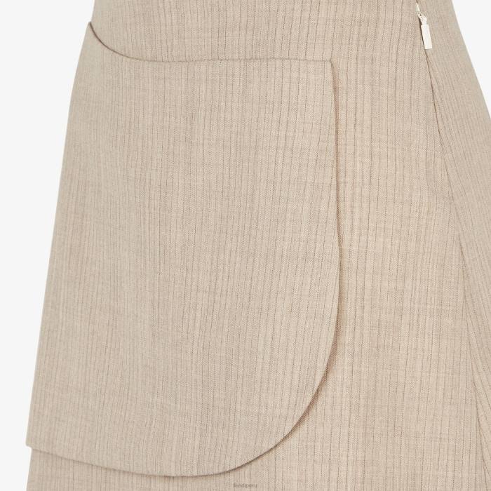 falda cruzada corta de cintura alta. cierre de cremallera lateral. Confeccionado en franela de lana a rayas beige. forrado.