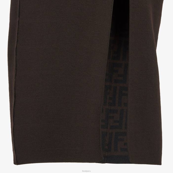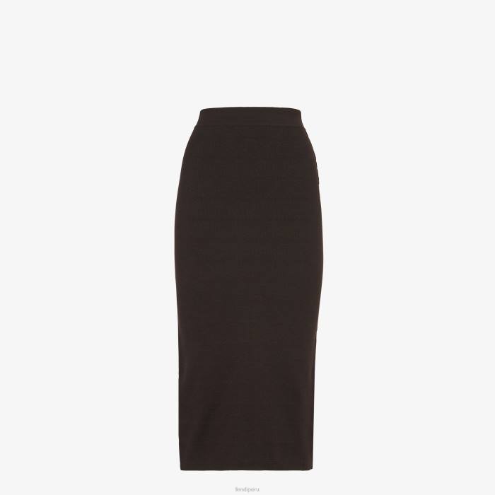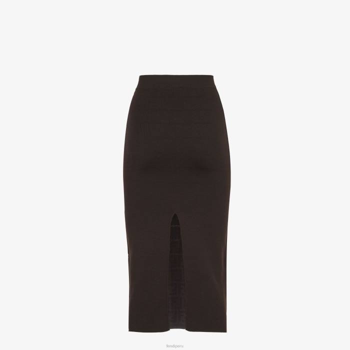 Falda entallada reversible de talle alto con abertura central en la espalda. Confeccionado en lana marrón en punto de doble cara. un lado liso y el otro personalizado con motivo ff en jacquard del mismo color.